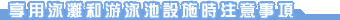 | • | 請勿在主池範圍內使用輔助泳具,但在已租用的泳線內則除外 | |