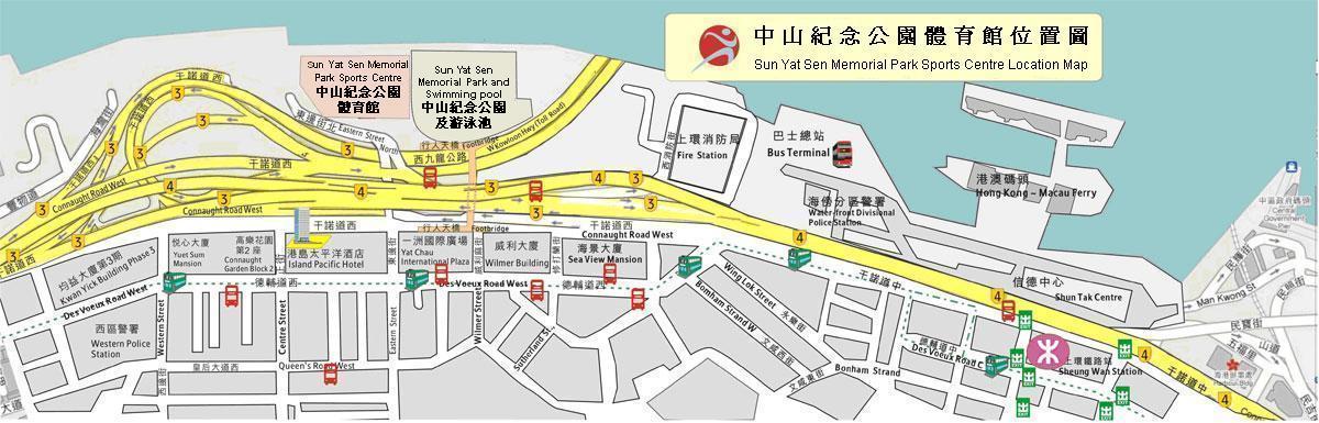 筲箕灣堅尼地城(東邊街站) 由東邊街行人天橋步行約5分鐘至中山紀念公園體育館