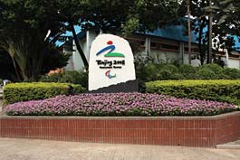在臨近奧運會的日子,全港各區相應進行城市景觀布置,以營造並加強奧運氣氛。沙田兩處美化市容地帶便分別展示刻有北京2008年奧運會(上)及殘奧會標誌的石刻布置。 |