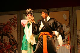 本地著名京昆剧演员邓宛霞和耿天元演出得奖京剧《乌龙院》。 |