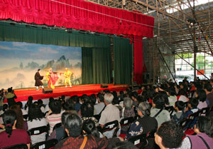 The District Cantonese Opera Parade promotes Cantonese opera and presents budding and amateur Cantonese opera troupes with opportunities to perform full-length repertoires at regional/district venues. To further arouse the interest of the general public, especially children, in Cantonese opera, the Department organised 'Let's Enjoy Cantonese Opera in Bamboo Theatre' performances in bamboo theatres in three districts in collaboration with district organisations from March to April 2009 on a trial basis. These performances featured Cantonese opera with interactive/educational activities tailored for children.