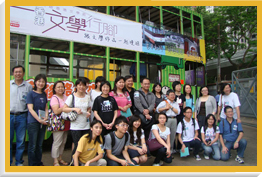 | 导赏学者丁新豹博士(后排右五)和导赏作家刘伟成(后排右七),带领「香港文学行脚 — 电车轨迹」的参加者乘坐电车漫游香港,追寻城市发展的足迹。 |