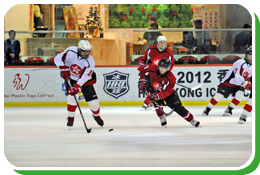 冰球运动员在「第十二届全国冬季运动会」竞技。