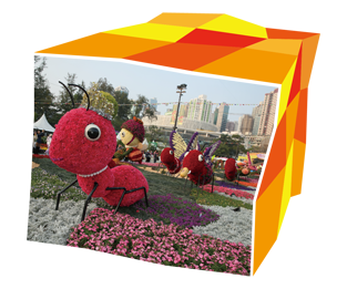 「二零一三年香港花卉展覽」中以花卉砌成的巨型昆蟲。