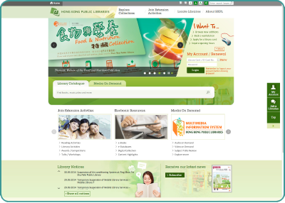 Along with these enhancements to HKPL’s core IT services, the HKPL website has also been given a new look from the end of March 2014, involving a complete reorganisation and the use of new technologies. The revamped website has a brand new user-friendly layout and provides the latest information about library events and activities, while also acting as a gateway for access to a wide range of online library services. There are also enriched sections on the website, such as the Locate Libraries section using Google Maps to help users find libraries, and the new e-Resources Thematic Page, which presents HKPL’s electronic resources in a systematic way. New designs have also been introduced for the Kids and Teens sections. In due course, the new website will be launched in a mobile-friendly version, and a Single-Sign-On function will be added to facilitate access to online library services through a single log-in for all library services.