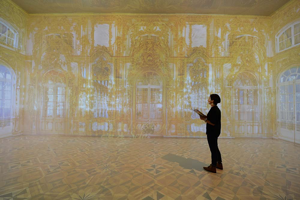 A multimedia programme at the exhibition presented the Catherine Palace, one of the palaces in Tsarskoye Selo, in a 360-degree virtual reality zone. |