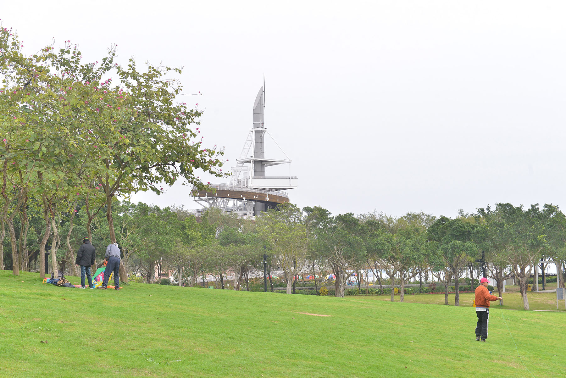 The 22-hectare Tai Po Waterfront Park is the largest park managed by the department. Its 32-metre Spiral Lookout Tower offers visitors a panoramic view of Tolo Harbour and the surroundings. Other facilities include a 1 000-metre promenade, an insect house, an amphitheatre, a central water feature, a sheltered viewing terrace, children's play areas, bowling greens, a gateball court, and a kite-flying area. The park also has a number of themed gardens, including a Floral Display Garden, a Scented Garden, a Malvaceae Garden, a Western Garden, an Ecological Garden, a Palm Garden, a Herb Garden, a Fig Garden and a Camellia Garden.