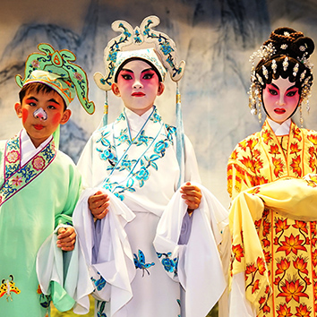 為提升學生對粵劇的興趣,本署在地區團體的支持下推出「戲棚粵劇齊齊賞」,於多個不同地區的戲棚上演粵劇,並舉辦專為學生觀眾而設的互動和教育活動。