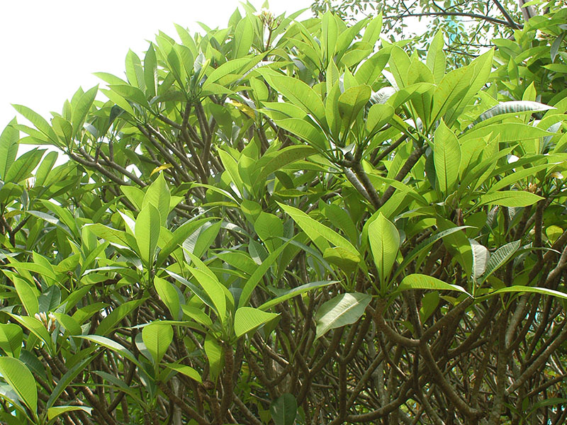 | Foliage of Frangipani | Bare branch of Frangipani | Frangipani |