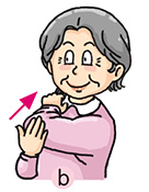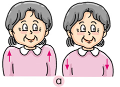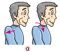 Bring your shoulders backward. Lift and rotate them forward. Repeat 8 times. | Bring your shoulders forward. Lift and rotate them backward. Repeat 8 times. |