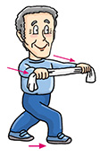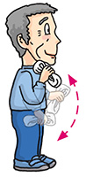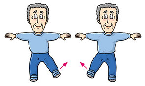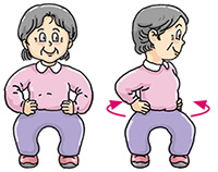 | Stand erect with legs apart and slightly bent. Arms akimbo and turn your upper body slowly to the left, then slowly to the right. Repeat 4 times. |