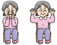 Bend your arms with elbows at waist level. Clench your fists, release and spread your fingers. Repeat 8 times.
