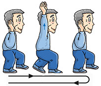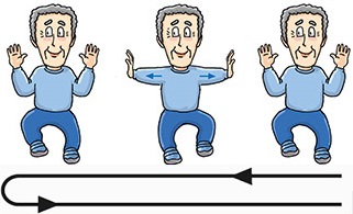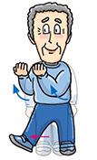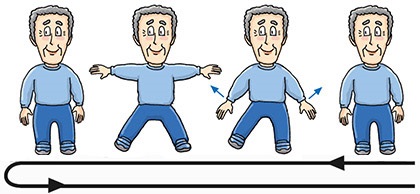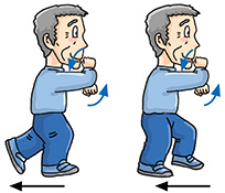 March on the spot 4 times, and then march backward 4 times. When marching backward, bend your arms and move them in circular motion in front of your chest.