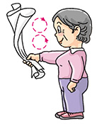 Stand erect. Hold one end of the towel with your right hand and make fast circular movements with your right arm. Repeat with the other hand. Keep your arms straight. Perform 8 to 12 times with each arm.