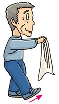 Stand erect. Stretch your arms straight in front of your abdomen. Hold the upper corners of the towel with your hands and lift your right foot to touch the lower part of the towel. Return to starting position and repeat with your left foot. Perform 8 to 12 times with each foot.