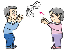 Stand face to face with your partner. Throw a knotted towel to each other. Perform 8 to 12 times. You may begin with a short throwing distance.