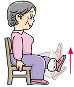Sit on a chair and tie an ankle sandbag (½ to 2 lbs in weight) to your leg. Slowly raise your leg and stretch it forward as far as possible with your foot slightly bending upward. Return slowly to the starting position. Perform 10 times with each leg.