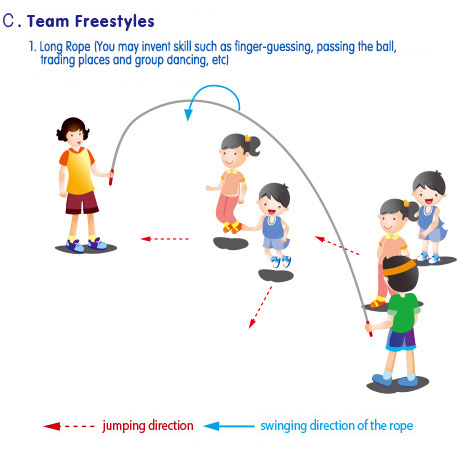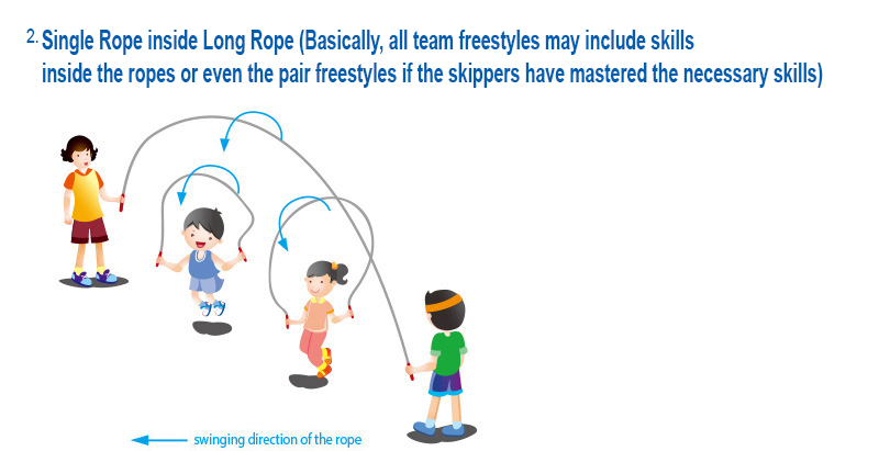 *Design different routines according to the rhythm of music. You may create an innovative routine by combining the single, pair and team freestyles. |
