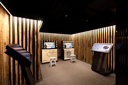 Additionally, an interactive makeup game is housed in two traditional Cantonese opera wardrobes with touchscreen monitors. After following step-by-step instructions in applying makeup, visitors can even document themselves in their newfound glamour using the photo-taking function.