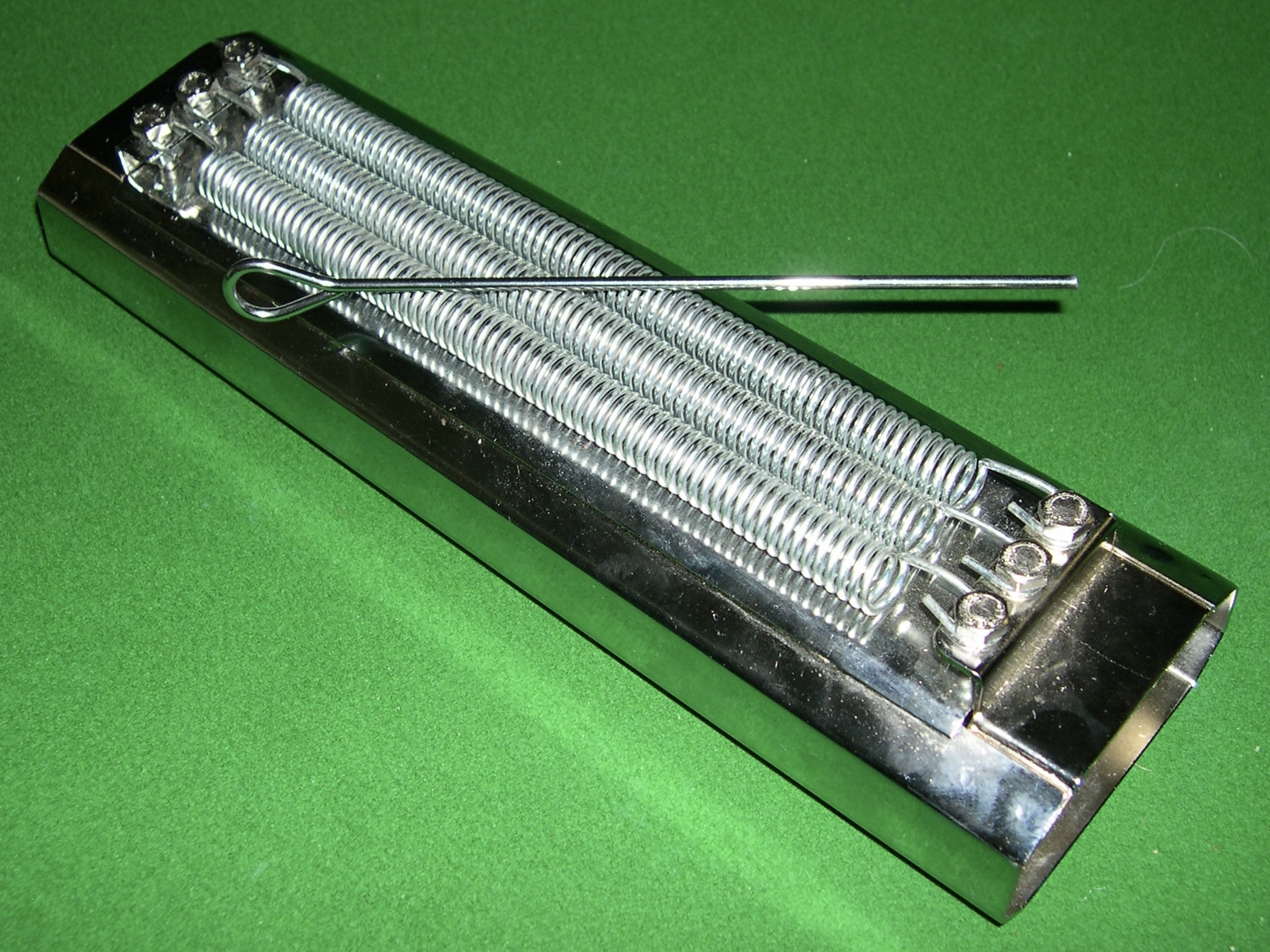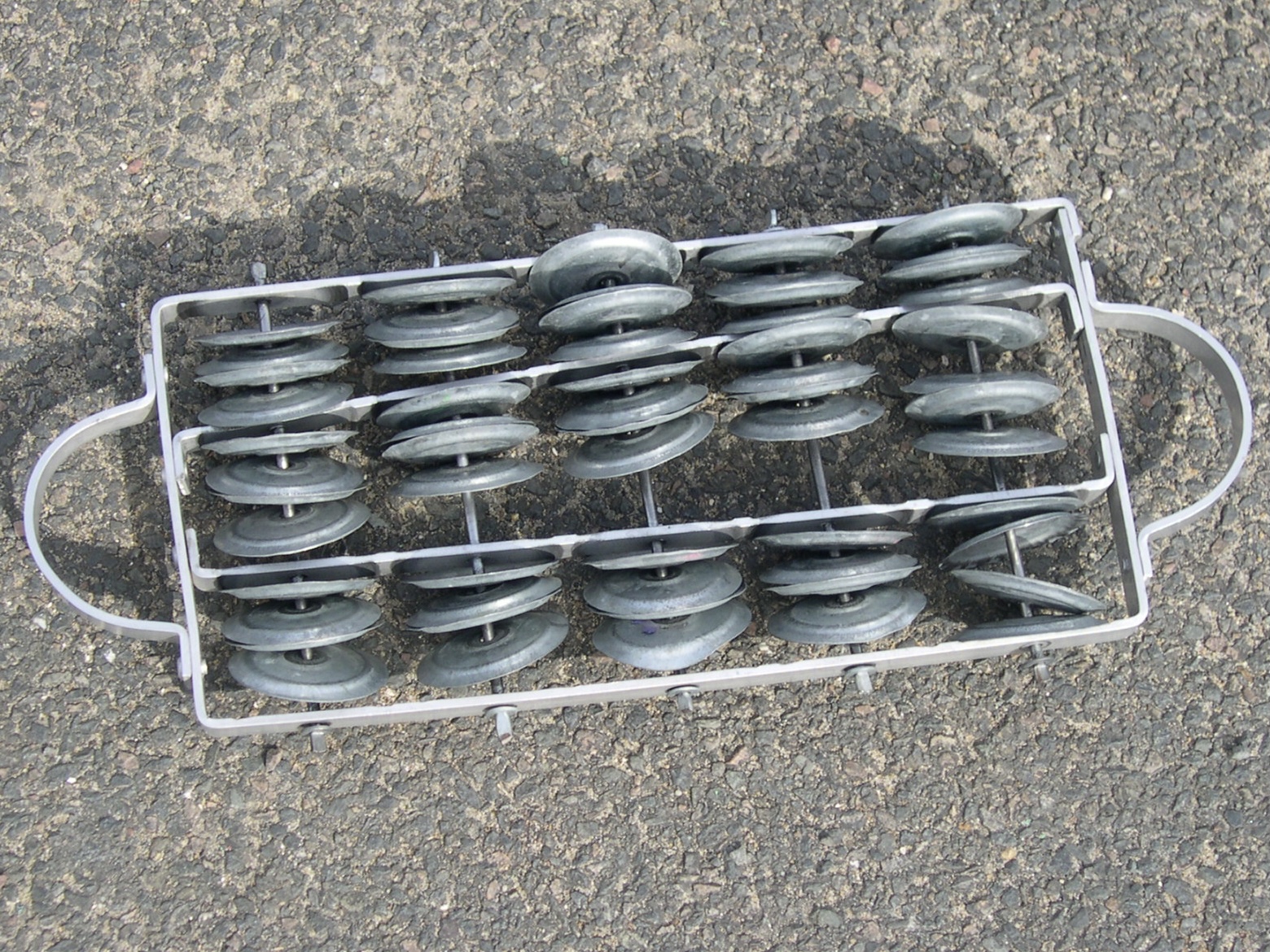 The instrument is a wood or steel instrument attached with two to three rows of jingles.