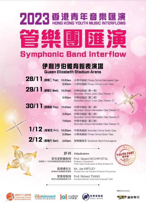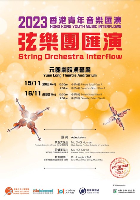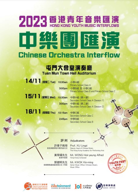 2023 "Music-Get-Together" Music Office Trainees' Concerts Concert 1, 2 (Winds) Concert 3, 4 (Chinese Music) Concert 5, 6 (Strings) |
