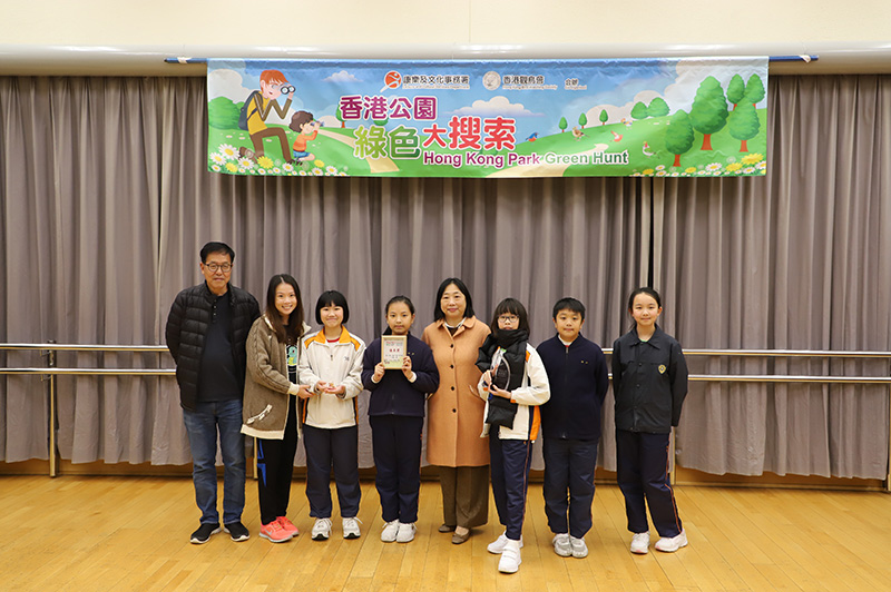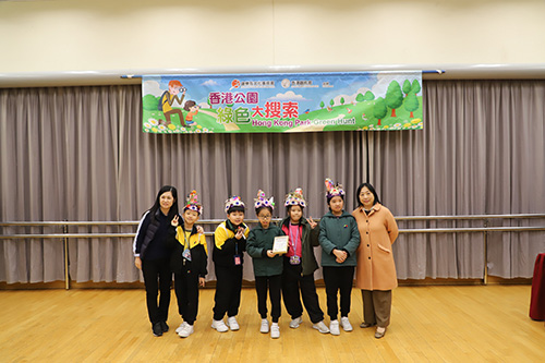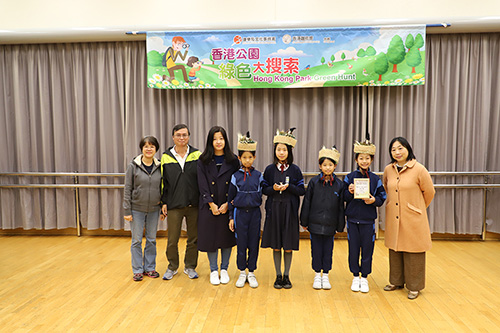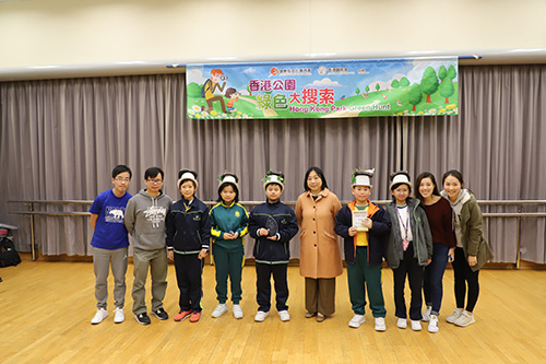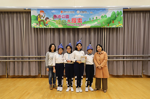 Hong Kong Park Green Hunt 2018-19, which was jointly organized by Leisure and Cultural Services Department and Hong Kong Bird Watching Society, was held successfully on 12 and 26 January 2019. There were 38 teams from 19 Primary Schools participated in the competition. In addition to the Champion, the 1st runner-up and the 2nd runner-up award, there were also merit awards and the most outstanding design of bird hat awards. The final results were listed as below: