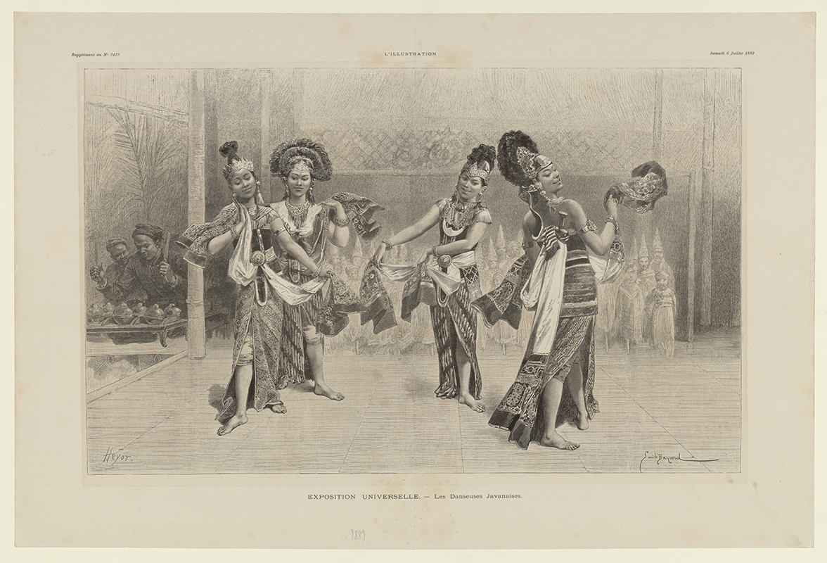 [图片4] 爪哇舞蹈家在甘美兰伴奏下,于1889年巴黎世界博览的表演情景