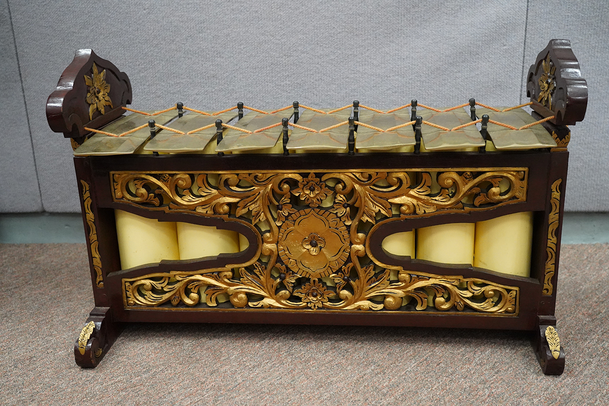 甘美兰是印尼本土的敲击合奏音乐,当中使用了大小、形状不一的青铜敲击乐器及一些木制乐器和弦乐器。每套甘美兰乐器只有一位工艺师,因此其特性、外观、颜色、音色和音律都是独一无二,不可与其他甘美兰乐器互换使用。除此之外,不同地区的甘美兰在音色、乐器外观、音律和演奏风格方面都各有不同。本展览将重点介绍其中一个最受推崇的甘美兰流派 - 爪哇甘美兰。