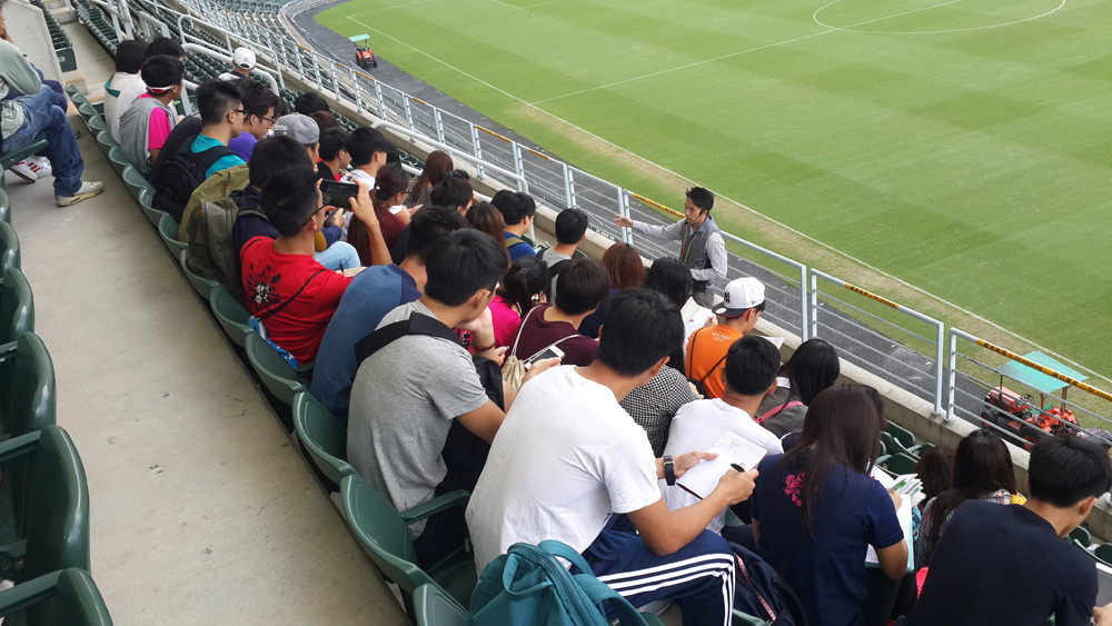 为推广香港大球场的设施和服务,我们会为参观者提供粤语或英语导赏服务,介绍球场背景及设施。有兴趣人士请致电(852)2895 7926与香港大球场职员预约。未有预约的人士亦欢迎即场参加,每节以30人为限,名额先到先得。