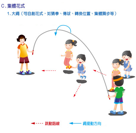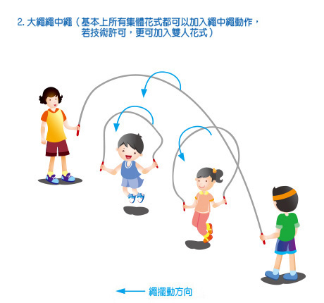 *可按音樂節奏將個人、雙人和集體花式串連,編排出一套創新的跳繩動作。 |