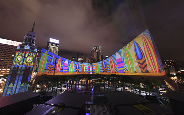 「閃躍維港」3D光雕匯演 (攝於2016年8月)© 香港旅遊發展局