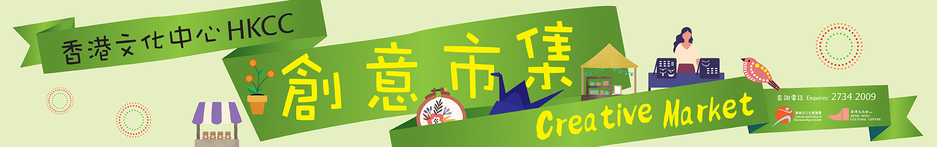 香港文化中心(文化中心)自2013年9月中推出「伙伴創意市集@文化中心」計劃以來,為更多藝術工作者在文化中心的廣場提供了一個展示創意和藝術造詣的空間。透過夥拍民間力量及與不同社區與青年創意機構攜手合作,我們期望能建立一個更廣闊及多元的創意平台,提升文化中心廣場的活力。