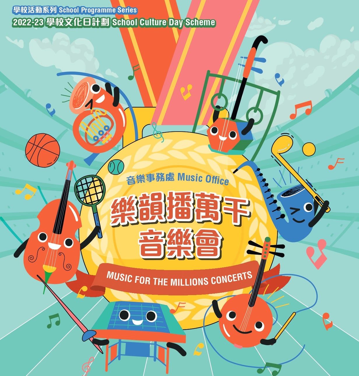 「樂韻播萬千」音樂會是音樂事務處的定期活動,於1977年12月首次演出,目的是培養學生對中西音樂的興趣,加深學生對各類型中西樂器的認識。音樂會節目教育與娛樂並重,由音樂事務處導師合奏小組定期到全港各中小學作巡迴演出。