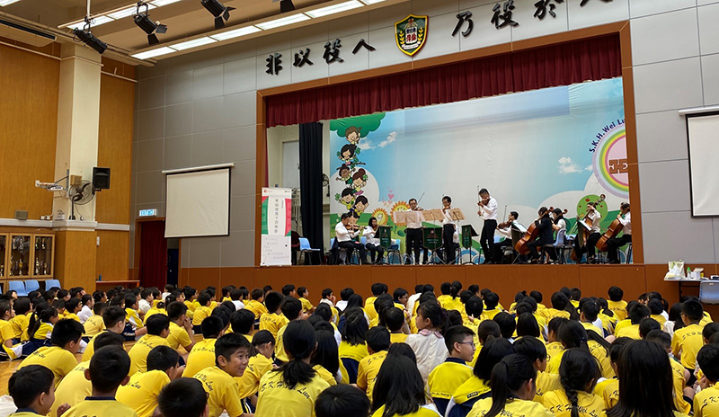 本處導師中、管、弦樂合奏小組定期到學校進行免費導賞演出,旨在藉樂團演奏向同學介紹不同中西樂器及培養他們對音樂的興趣。為增加同學的投入感及現場氣氛,學校可安排同學於音樂會前,在音樂課練習樂韻播萬千主題曲,並鼓勵同學瀏覽本處製作的音樂指南及中西樂器介紹。學校如欲安排到校音樂會,歡迎查詢(電郵:amoiint@lcsd.gov.hk;電話:2158 6470)。