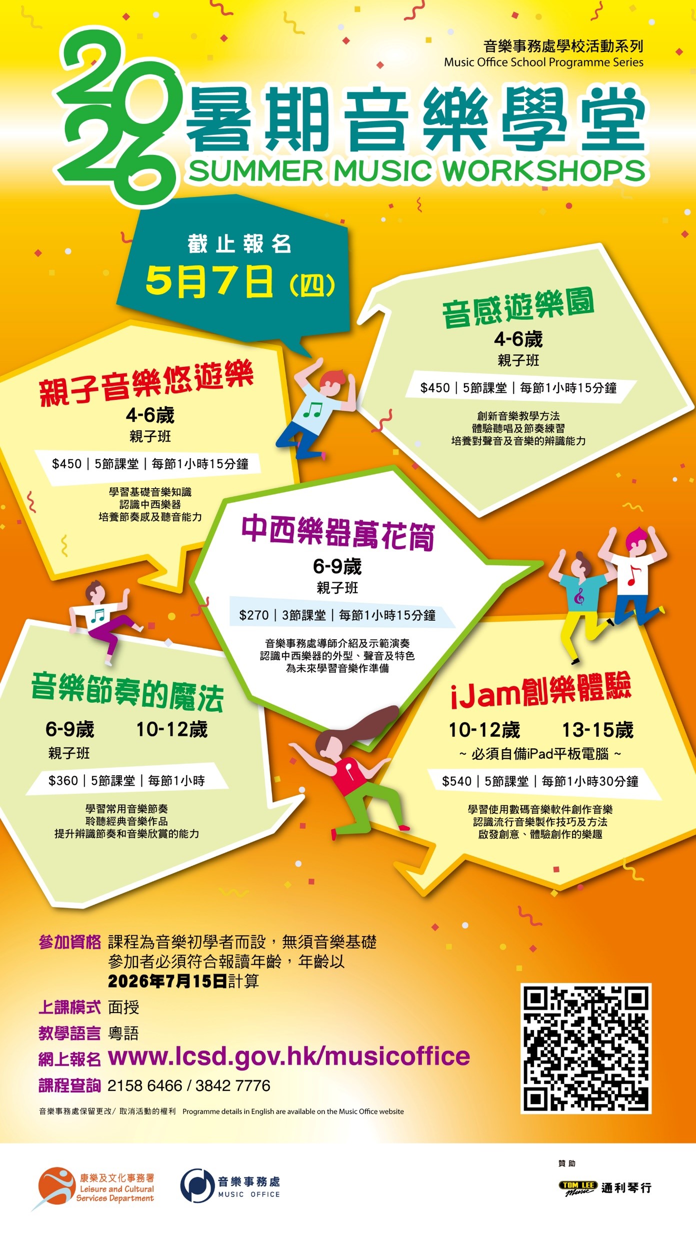 歡迎4-15歲莘莘學子參加,暢遊奇妙的音樂世界!