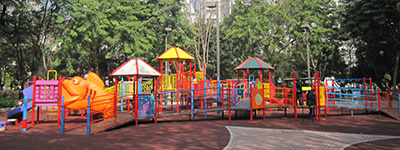 遊樂場的設計構思不但要令兒童積極參與遊戲活動,更鼓勵學前至學齡兒童在活動之餘,發揮豐富的想像力及創造力。為了讓兒童安全玩耍,遊樂場鋪上安全地墊,確保安全。