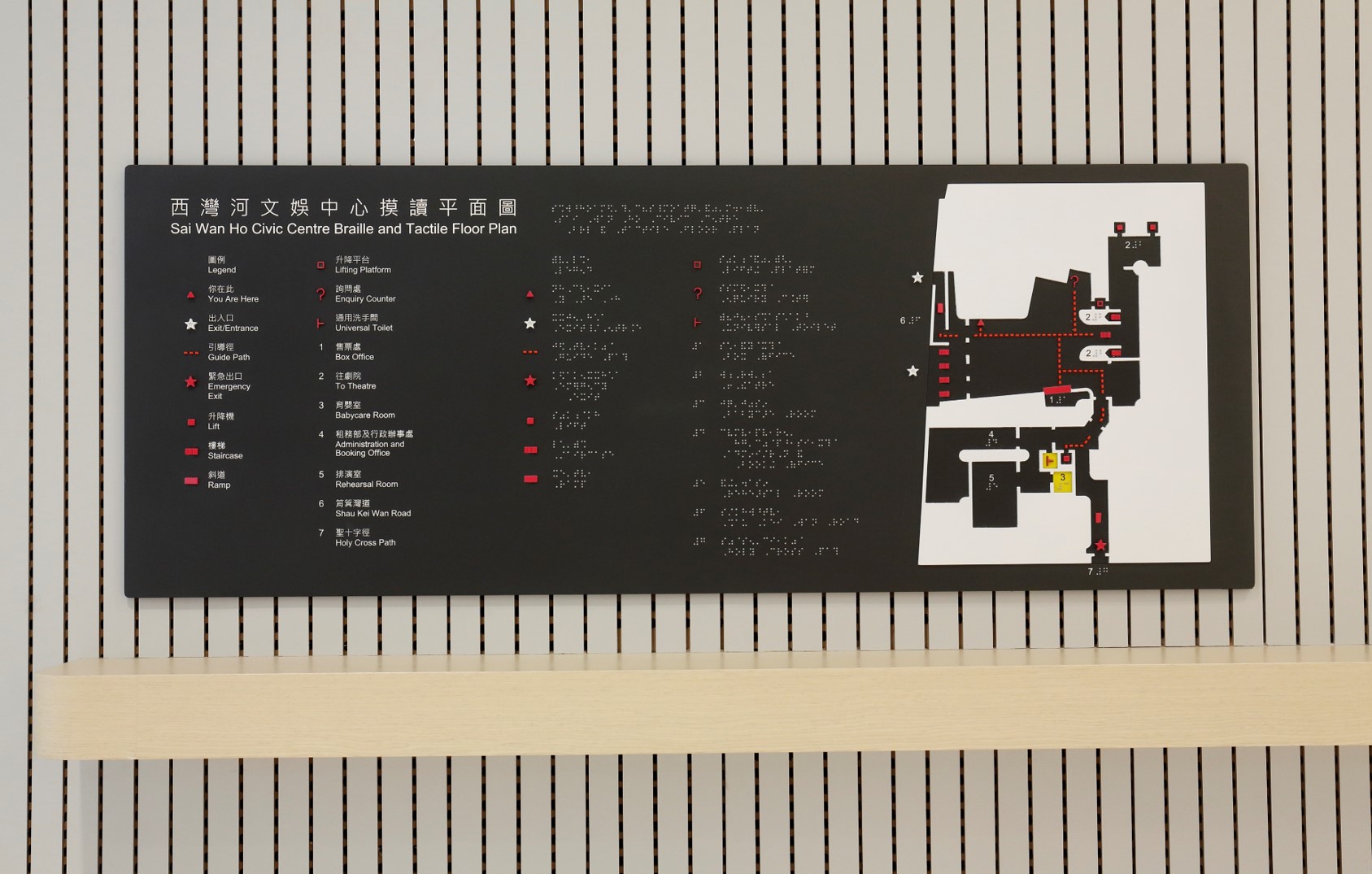 大堂設有為視障人士而設的摸讀地圖